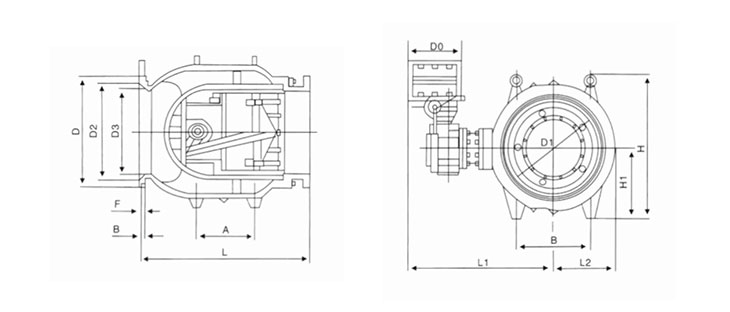 | DN | L | L1 | L2 | H | H1 | D0 | A | B |