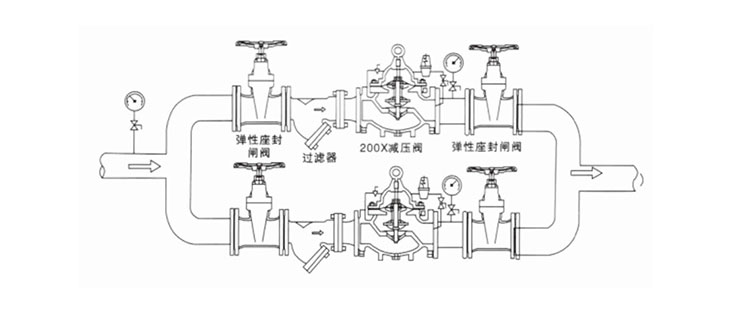 200X減壓閥是一種利用介質(zhì)自身能量來調(diào)節(jié)與控制管路壓力的智能型閥門�?捎糜谏罱o水消防給水及其他工業(yè)給水系統(tǒng),通過調(diào)節(jié)減壓導(dǎo)閥,即可調(diào)節(jié)主閥的出口壓力。出口壓力不受進口壓力、進口流量的變化而變化,安全可靠地將出口壓力維持在設(shè)定值上,并可根據(jù)需要調(diào)節(jié)設(shè)定值以達到減壓目的。該減壓閥減壓精確,性能穩(wěn)定、安全可靠、安裝調(diào)節(jié)方便,使用壽命長。