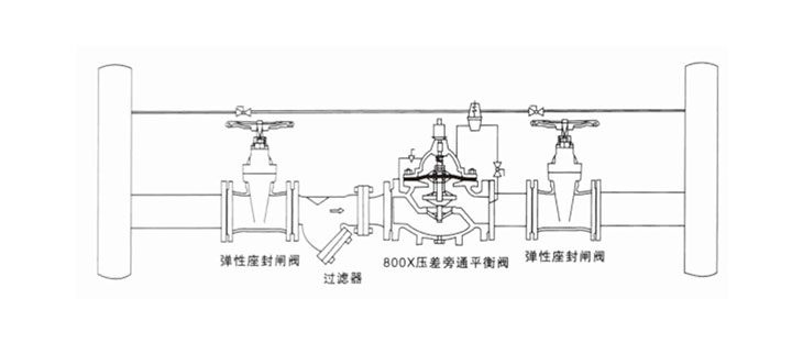 800X壓差平衡閥由主閥、壓差控制導(dǎo)閥、針閥、球閥、微形過濾器和壓力表組成水力控制接管系統(tǒng)。通過專門設(shè)計的導(dǎo)閥控制室,對壓力變化信號進(jìn)行比較,輸出主閥開度信號,控制主閥開度,從而控制主閥的進(jìn)出口壓差在設(shè)定值上。