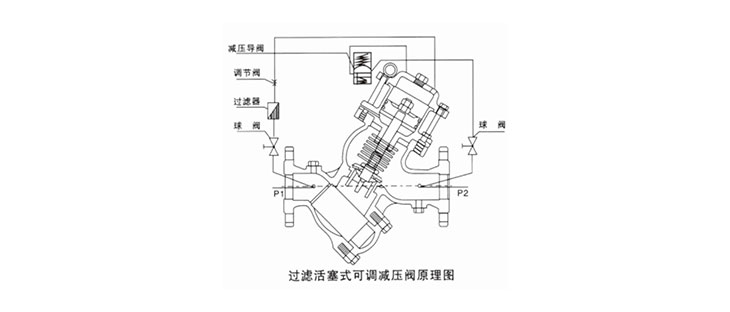 YQ98001過濾活塞式減壓閥,是一種利用介質(zhì)自身能量來調(diào)節(jié)與控制管路壓力的智能型閥門。當(dāng)閥門從進(jìn)口端給水時(shí),水流過針型閥進(jìn)入主閥控制室,出口壓力通過導(dǎo)管作用到導(dǎo)閥上。當(dāng)出口壓力高于彈簧設(shè)定值時(shí),導(dǎo)閥關(guān)閉�?刂剖彝V古潘藭r(shí)主閥控制室內(nèi)壓力升高并關(guān)閉主閥,出口壓力不再升高。當(dāng)閥門出口壓力降到導(dǎo)閥彈簧設(shè)定壓力時(shí),導(dǎo)閥開啟,控制室向下游排水。由于導(dǎo)閥系統(tǒng)排水量大于針閥的進(jìn)水量,主閥控制室壓力下降。進(jìn)口壓力使主閥開啟。在穩(wěn)定狀態(tài)下,控制室進(jìn)水、排水相同,主閥開度不變,出口壓力穩(wěn)定。出口壓力不因進(jìn)口壓力變化而改變。亦不因主閥出口流量的變化而改變,安全可靠的將出口壓力維持在設(shè)定值上。該閥減壓精確,性能穩(wěn)定、安全可靠、安裝調(diào)節(jié)方便,使用壽命長(zhǎng)�?捎糜谏罱o水、消防系統(tǒng)及工業(yè)給水系統(tǒng)。